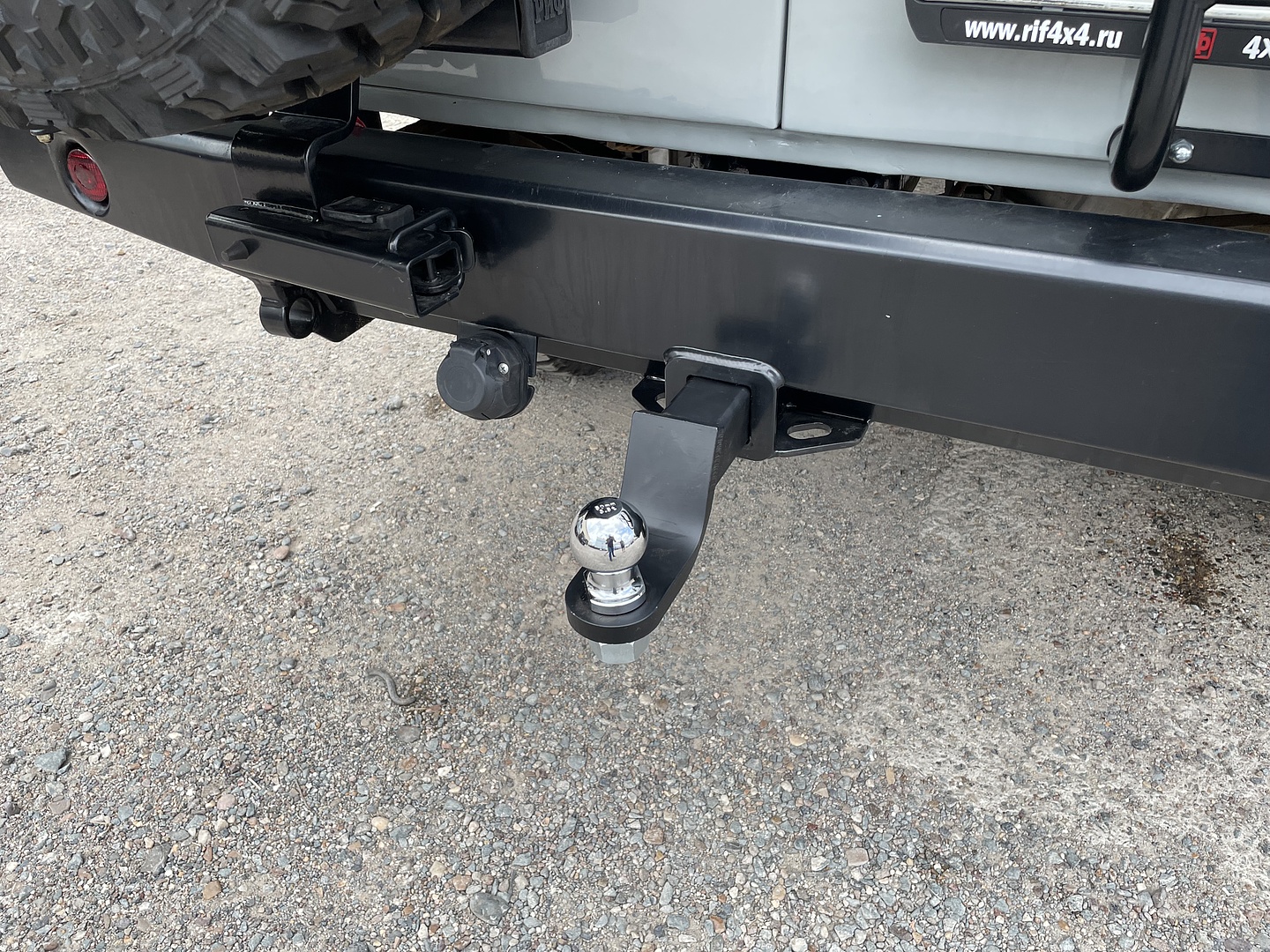 кронштейном крепления (калиткой) запасного колеса (штатное запасное колесо, размещается на кронштейне).